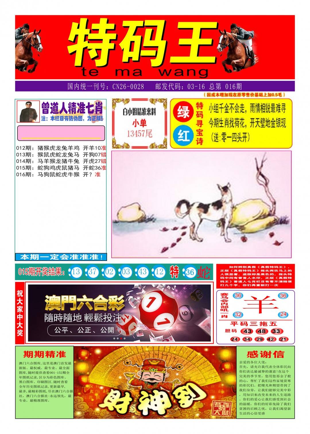 016期:包租公→推荐⑥肖12码→开?00准 |